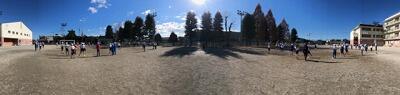 校庭では駅伝部が