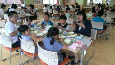 などと話をしながら各グループ、楽しく給食を食べていました。