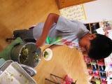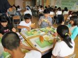 ちょこっと食通信を聞いた子どもたち、もりもりモロヘイヤスープを食べていました。