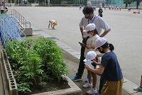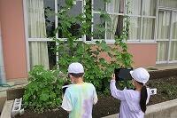 花壇のゴーヤやヒョウタン、1年生のアサガオなどの植物の成長の様子も観察