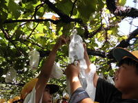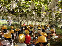 最後は、大平のぶどう園に行きました。広々としたぶどう畑やたくさん実ったぶどうを見て、目がキラキラしていました。どのように栽培しているか説明を聞いた後、ぶどうを収穫しました。家から持ってきた保冷バックに入れて、大切そうに持ち帰ってきました。