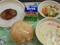 も「コッペパン(ハンバーグサンド)・牛乳・ハンバーグトマトソース・フレンチサラダ・かぼちゃ