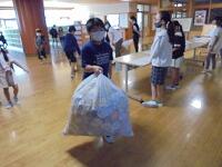 のお手伝いを担当しています。今日もたくさんの児童が、アルミ缶を持って来てくれました。「おはようございま~す。