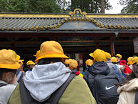 朝まで雨が降っていたので、日惜ホールで出発式です。