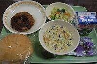 ・牛乳・肉団子スープ・ほうれん草のソテー」で、お楽しみのあげパンがココア味