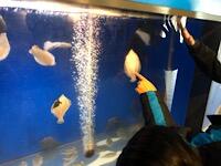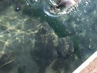 ヒラメにエサやりをさせてもらいました。