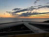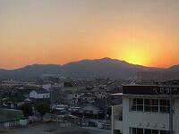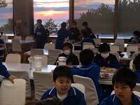 食堂に一番乗りで、朝日を拝みながら朝食です。