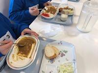 今日は2時間目に5の1、3時間目に5の2、4時間目に5の3の各教室で、「どんな食べ方