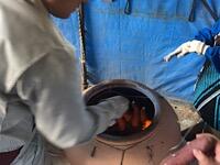 そして、練炭に入れた炭に火がつくように、ひたすらあおぎます!