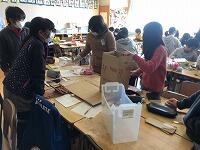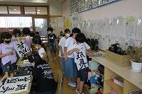 焼きいも班は、いもを針金に取り付けています。