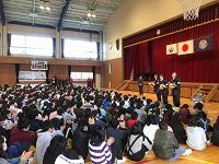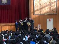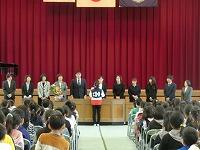 を行いました。ちょうど1・2年生が下校する時間帯、「がんばって~。」「ふぁいと~。」とかわいい応援の声