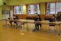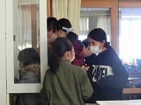 自然の家の先生にあいさつをして、施設利用の注意点について話をうかがいます。