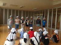 活動班長が昼休みに集まって、「出発式」や「入所式」などの司会を練習しました。