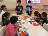 の日でもありました。かみかみメニューの日は、「よく噛んで食べることを意識する日」です。とくに、今日は、たっぷりごぼうの入った五目金平をしっかり噛んで食べることがポイントです。(写真は五目金平をおかわりする3の3