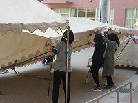 本日放課後、今月末に行われる運動会に向け、テントを設営しました。