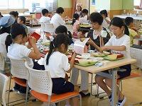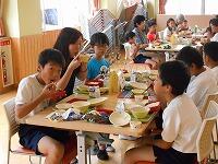地域の皆様には、食事のマナーを教えてもらいながら、一緒に楽しく給食をいただき、素敵なひとときを過ごしました。
