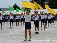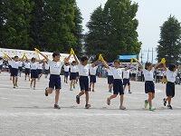 校庭では、力の限り声を出し、体も使って盛り上がる。