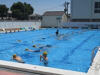 をしながら取り組みました。また、見学児童はプールサイドではなく、冷房