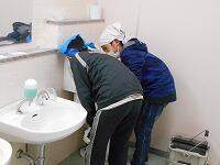 みんなでゴシゴシ、オープンスペースの水道そうじ