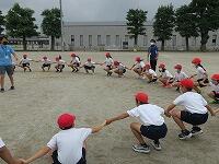 上手になってきましたね。それでは、玉入れの玉を紅白に分かれて投げてみよう。えいっ