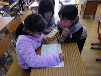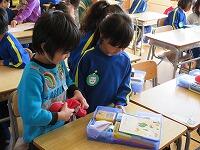 とても寒い朝でしたが、1年生は元気いっぱい。今日の2時間目には、内地留学に行っている早川先生が来てくださって、生活科の授業を学年全体で行いました。いろいろな形の袋を使って、目には見えない空気をつかまえました。