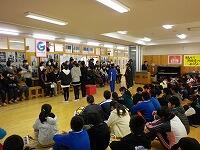 今週から、『給食週間』が始まります。今朝はチャレンジタイムに、給食委員会のみなさんによる、「給食感謝会」ありました。体育館に集合し、調理員さん方を拍手でお迎えしました。