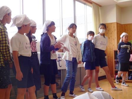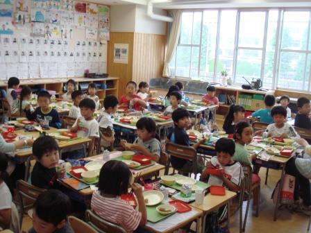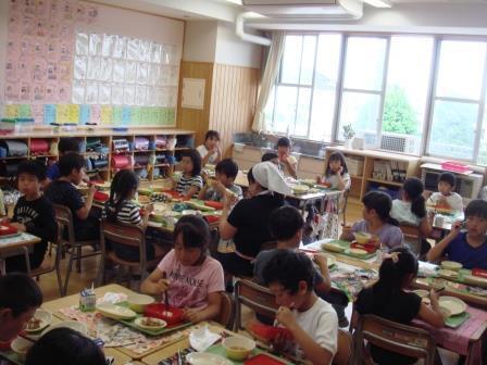 立腰指導の成果で授業中の姿勢がよいこと、「いただきます」のあいさつに調理員さんや給食当番さんへの感謝の言葉もあり心がこもっていること、「食のマナーボランティア」やサマースクールでの地域ボランティアなど多くの地域の方が食育にご協力いただいていることなど、たくさんほめていただきました。