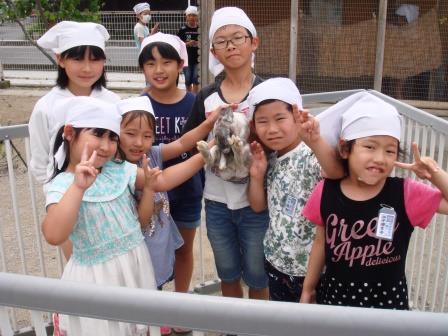 休み時間のウサギとのふれあい。 名前は、ミルキー。