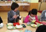 のみなさんにも参加していただきました。事前には、給食主任より、ボランティアさんへの説明がありました。食のマナー指導、よろしくおねがいします。