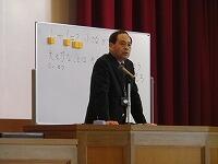 校長先生は、「努力を続けることの大切さ」を「1+1」の式と算数ブロックを使ってお話ししてくださいました。