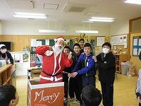 さて、この給食の時間に、1・2年生、特別支援学級の各教室に、なんと「サンタクロース」が現れました。
