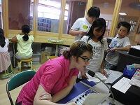 「セーラ先生!『台風』は、英語で何と言うのですか?」 「『タイフ~ン』です。みんなで言ってみましょう。『タイフ~ン!!』 」と、まさしく今日にタイムリーな気象用語講座となりました。