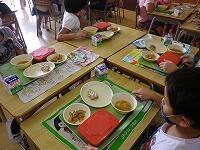 」! 6班・14班・22班の皆さんが、日惜ホールでなかよく給食をいただきました。