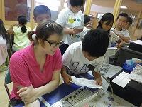 「セーラ先生!『台風』は、英語で何と言うのですか?」 「『タイフ~ン』です。みんなで言ってみましょう。『タイフ~ン!!』 」と、まさしく今日にタイムリーな気象用語講座となりました。