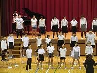 今日は「下都賀地区小学校音楽発表会」が栃木文化会館で行われます。出発前の音楽集会で、全校生に曲を披露してくれました。曲目は『地球星歌 ~笑顔のために~』です。