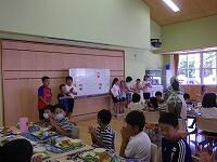 最後に配膳の様子がすばらしかったこと、なかよしランチでの会食は、上級生が下級生に優しい言葉をかけながら楽しく食べていること、学校内の元気いっぱいのあいさつに感動したことなど、たくさんのお褒めの言葉をいただいくことができました。調理員さんたちのチームワークのよいお仕事ぶりも見ていただきました。