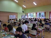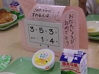 いろいろな学年のお友達と班を作って座りました。5月生まれの先生も一緒のグループに入っていただいた班もありますね。レモンゼリーは、5月生まれのみなさんのための特別メニュー