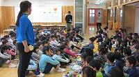この後、2年生のお兄さんお姉さんから、今日の探検を記録したカードを、班ごとにプレゼントしてもらいました。2年生のみなさん、優しい上級生ぶりを発揮しての大活躍でしたね。1年生のみなさん、とても広い栃木中央小の探検、がんばりましたね。学校のことがよく分かって楽しかったですね。