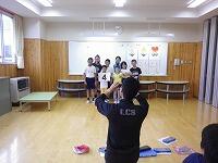 ハンカチ落とし風にみんなの周りをまわる カルタ取り風にみんなで一斉に手を出す
