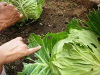 3年生は理科で「こんちゅうの育ち」を学習しています。職員室前にある花壇のキャベツに、モンシロチョウが卵を産み付けました。キャベツの葉っぱは、モンシロチョウの幼虫がお食事をしたあとが、模様のようになっています。