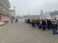 4年生が.1泊2日の宿泊学習に行ってきます。朝靄の中、元気な挨拶をして出発です。