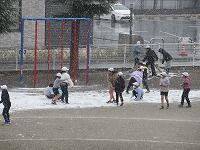 お昼ごろには校庭もぬかるんできたので、風邪をひかないよう、また、安全面も考慮して、室内遊び