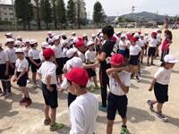 運動会をイメージして、整列の仕方や回れ右などの向きの変え方、そして行進の練習をしました。