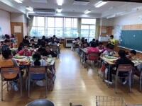 どのクラスも、口は食べることに集中していましたが、耳はスピーカーに集中していました。