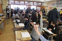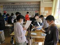 3時間目、理科室では6の2のみなさんが、理科『水よう液の性質』の学習のまとめを行っていました。日下部先生からの指令「水よう液を見破れ」に挑戦中。