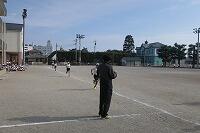 には、たくさんの児童が校庭で遊んでいました。ドッジボール