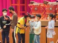 開演と同時に幕が開き、演奏が始まりました。力強い太鼓の音に子どもたちもの視線
