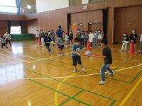 日惜ホールでは「ボール投げ&キャッチ」、体育館では「風船バレー
