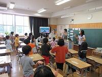 テップ先生と玉澤先生のお手本を見たら、さっそく出発。「Hello.」「I like ~~