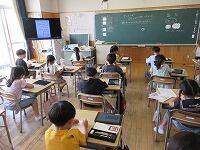 先生が順番に丸花丸を付けてくれています。1年生笑うのみなさん、漢字キラキラもバッチリ了解上手に書けましたね花丸